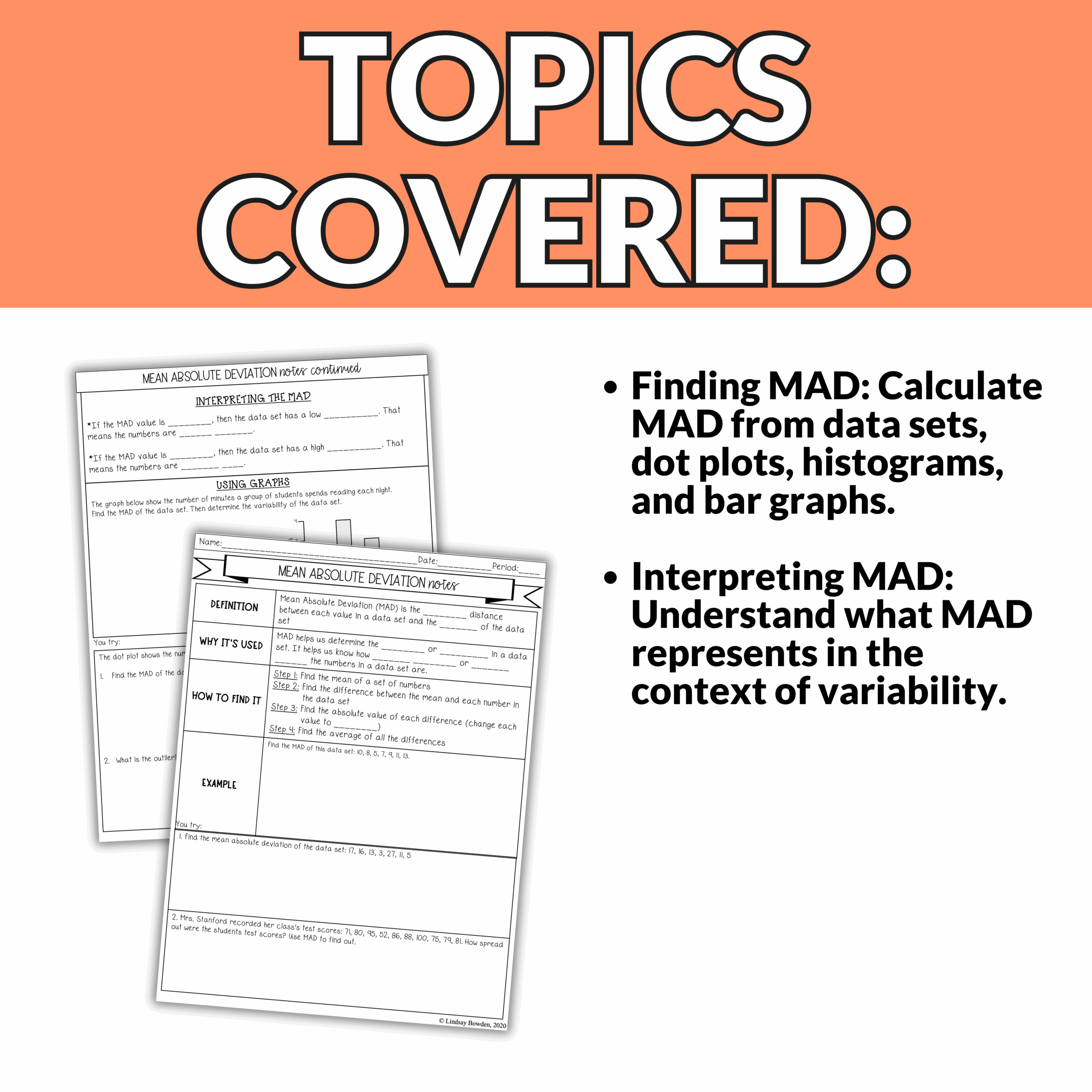 Mean Absolute Deviation Notes And Worksheets Lindsay Bowden