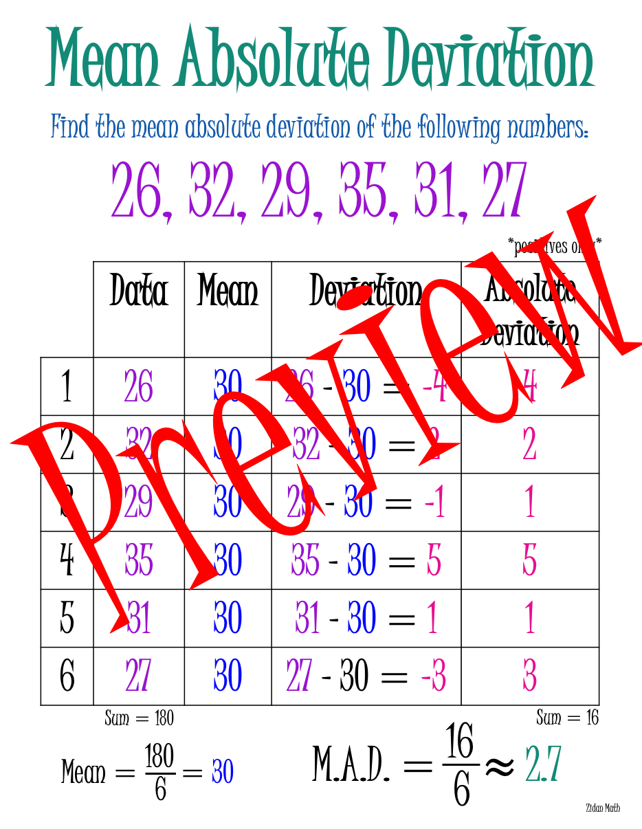 Mean Absolute Deviation Notes And Worksheets Lindsay Bowden