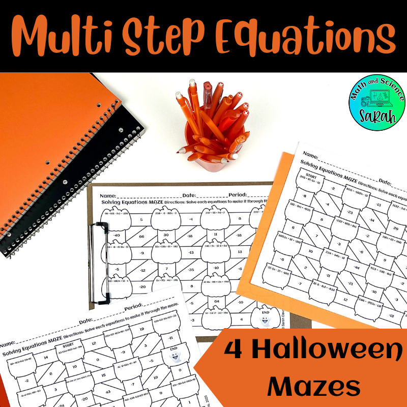 4 Solving Multi Step Equations Halloween Mazes Algebra Worksheet Activities Math And Science Sarah
