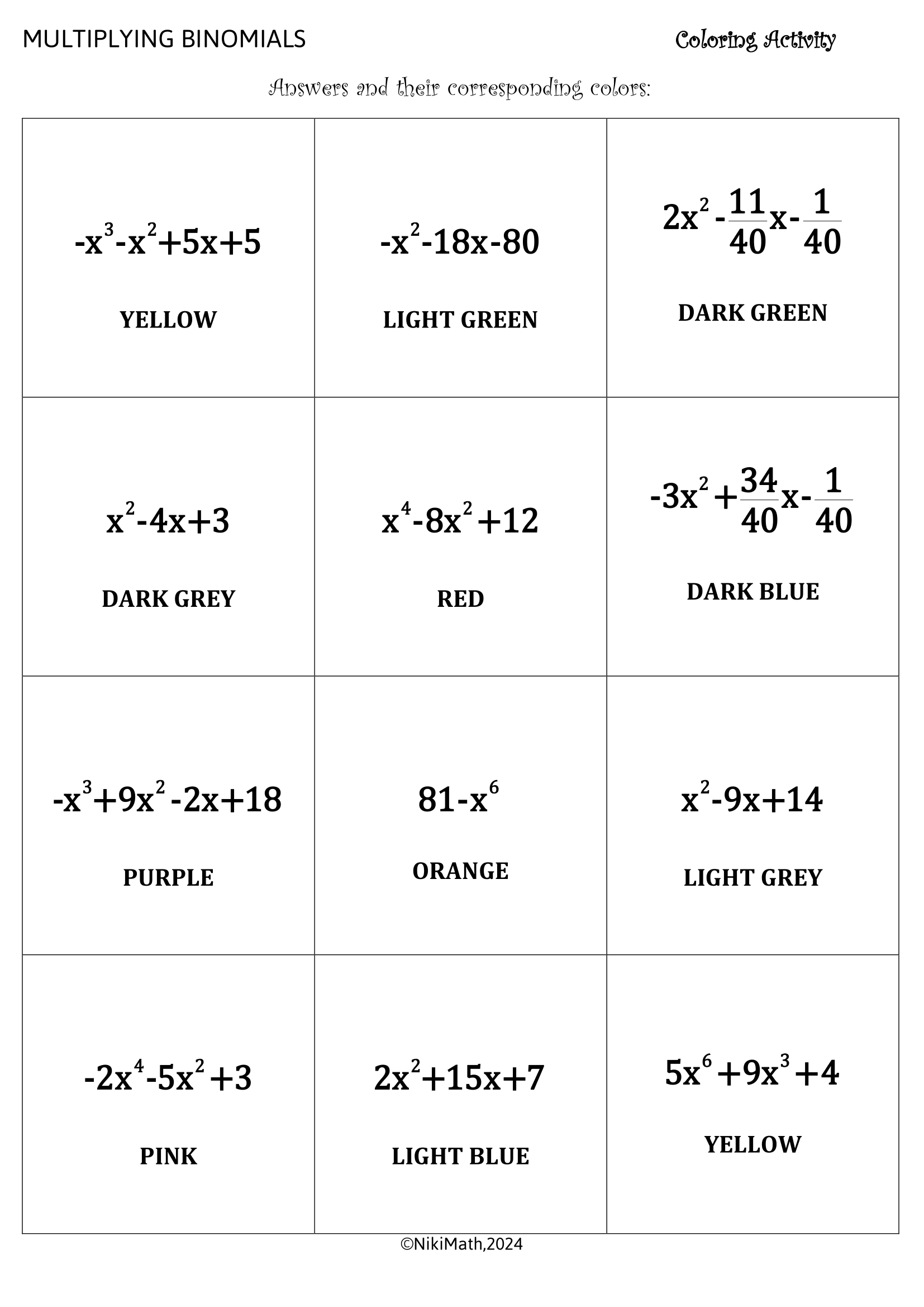 As you work your way through the maze, you’ll encounter various binomial multiplication problems that will put your math skills to the test. It’s a hands-on approach to learning that will make algebra more enjoyable and interactive.
