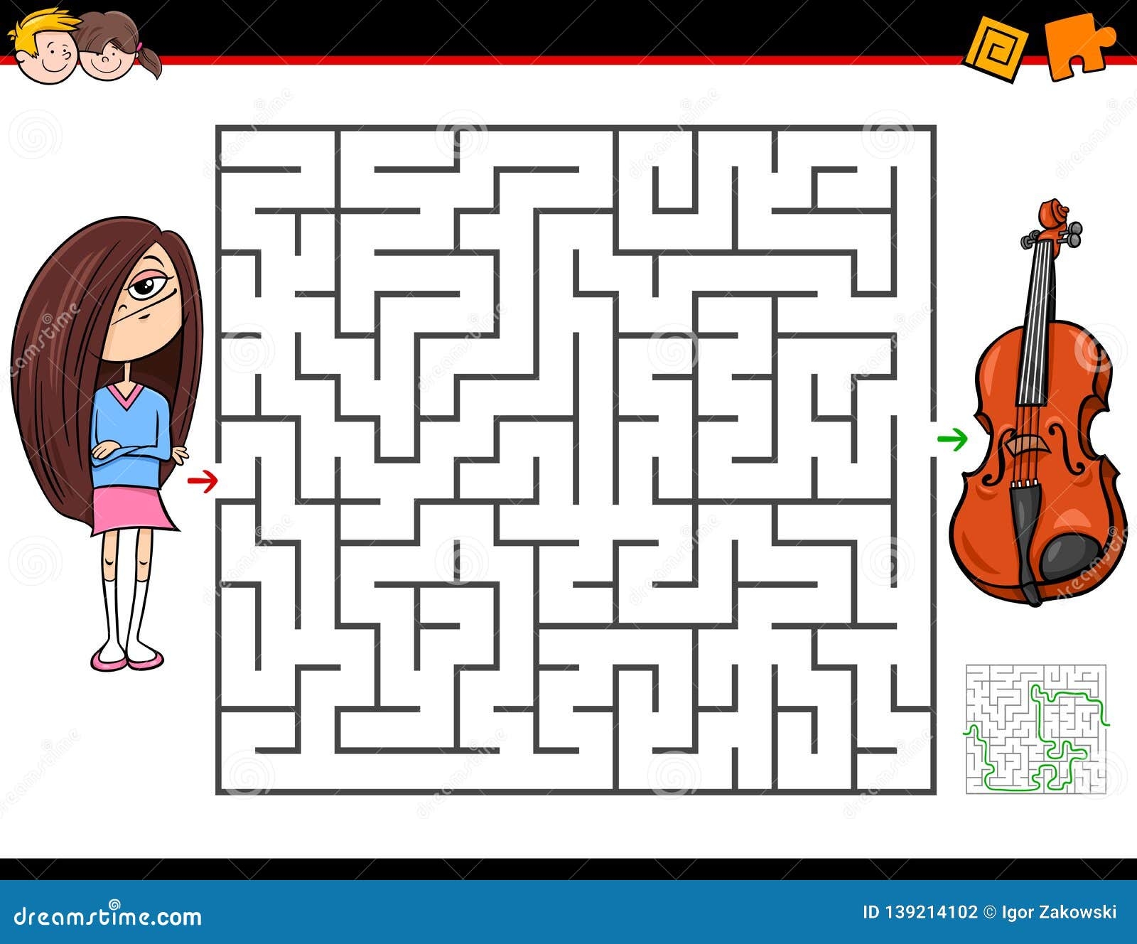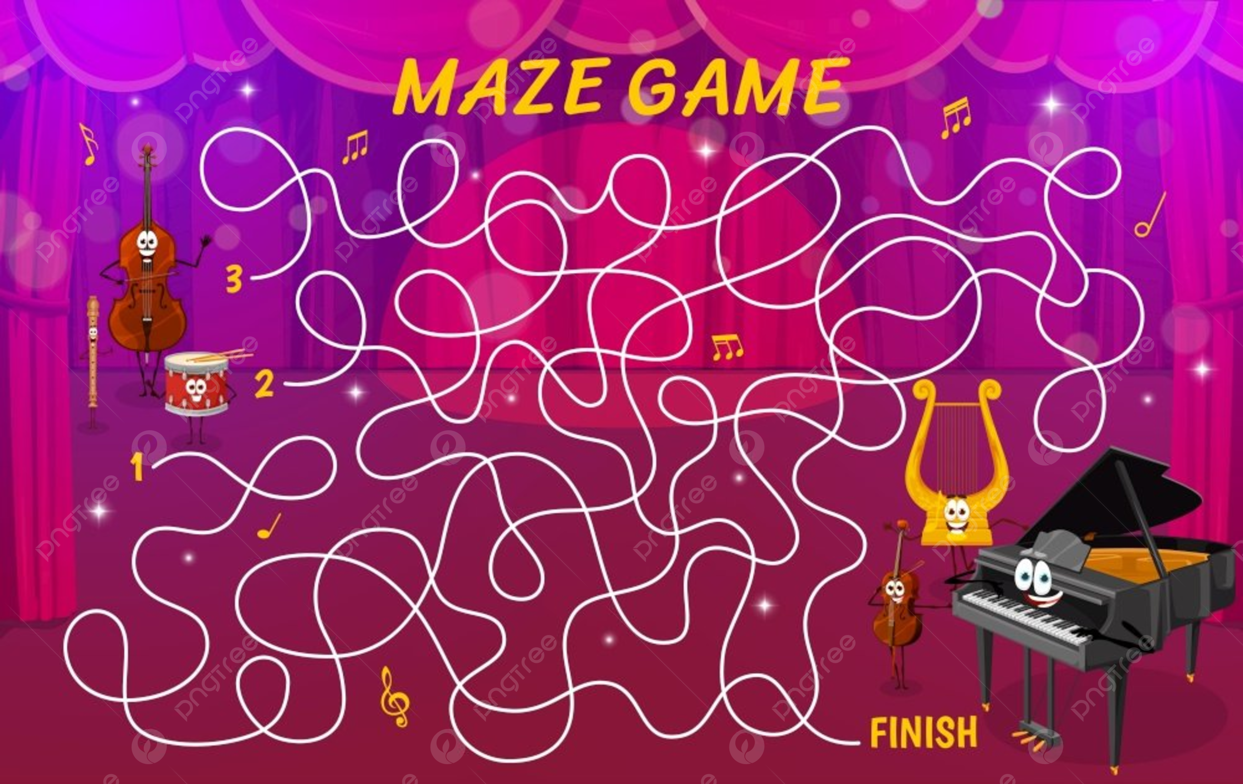 Labyrinth Maze With Cartoon Musical Instruments On The Stage Help