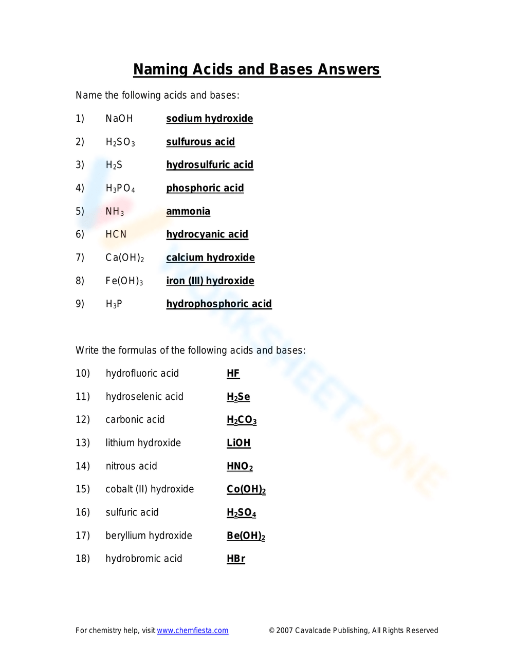 Naming Acids And Bases Worksheet Naming Acids And Bases Worksheets Library