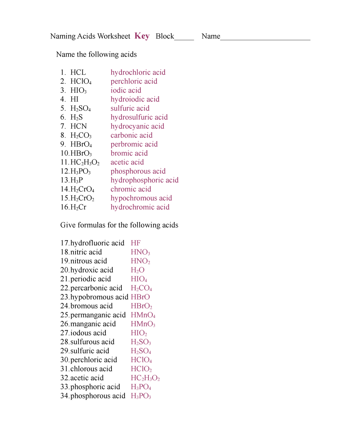 Naming Acids WSKey Notes Naming Acids Worksheet Key Block Worksheets Library