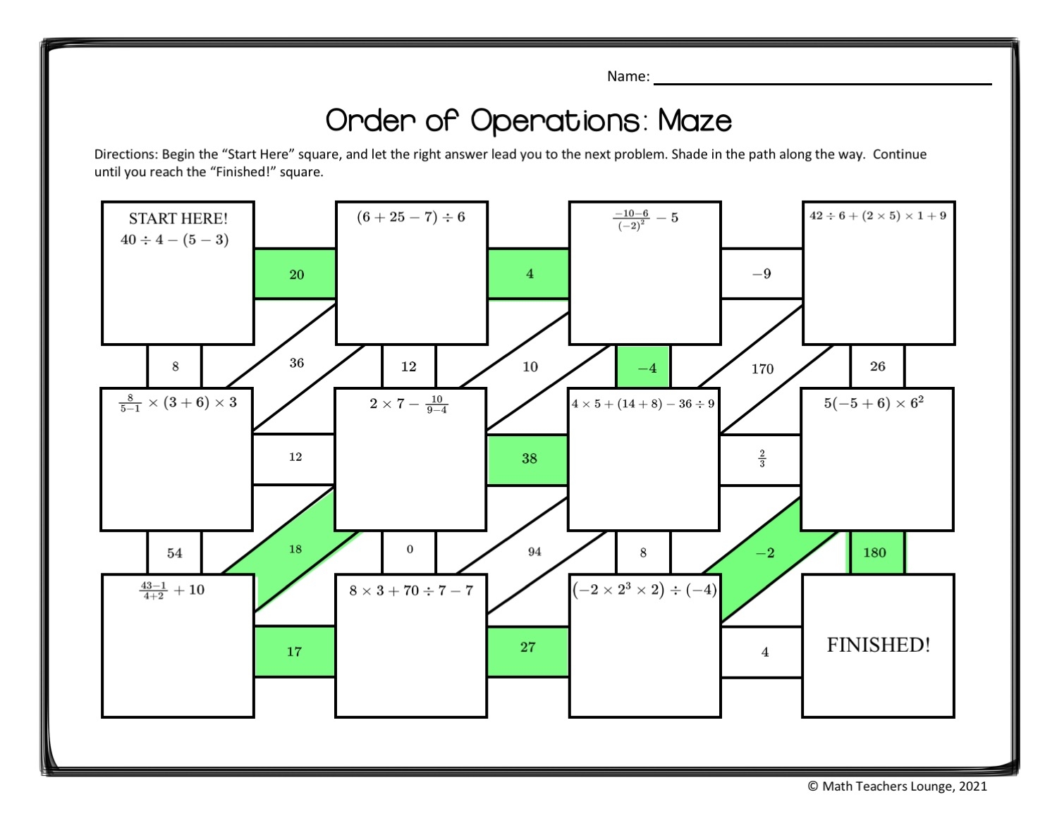 Order Of Operations Maze 4 Mr R s World Of Math