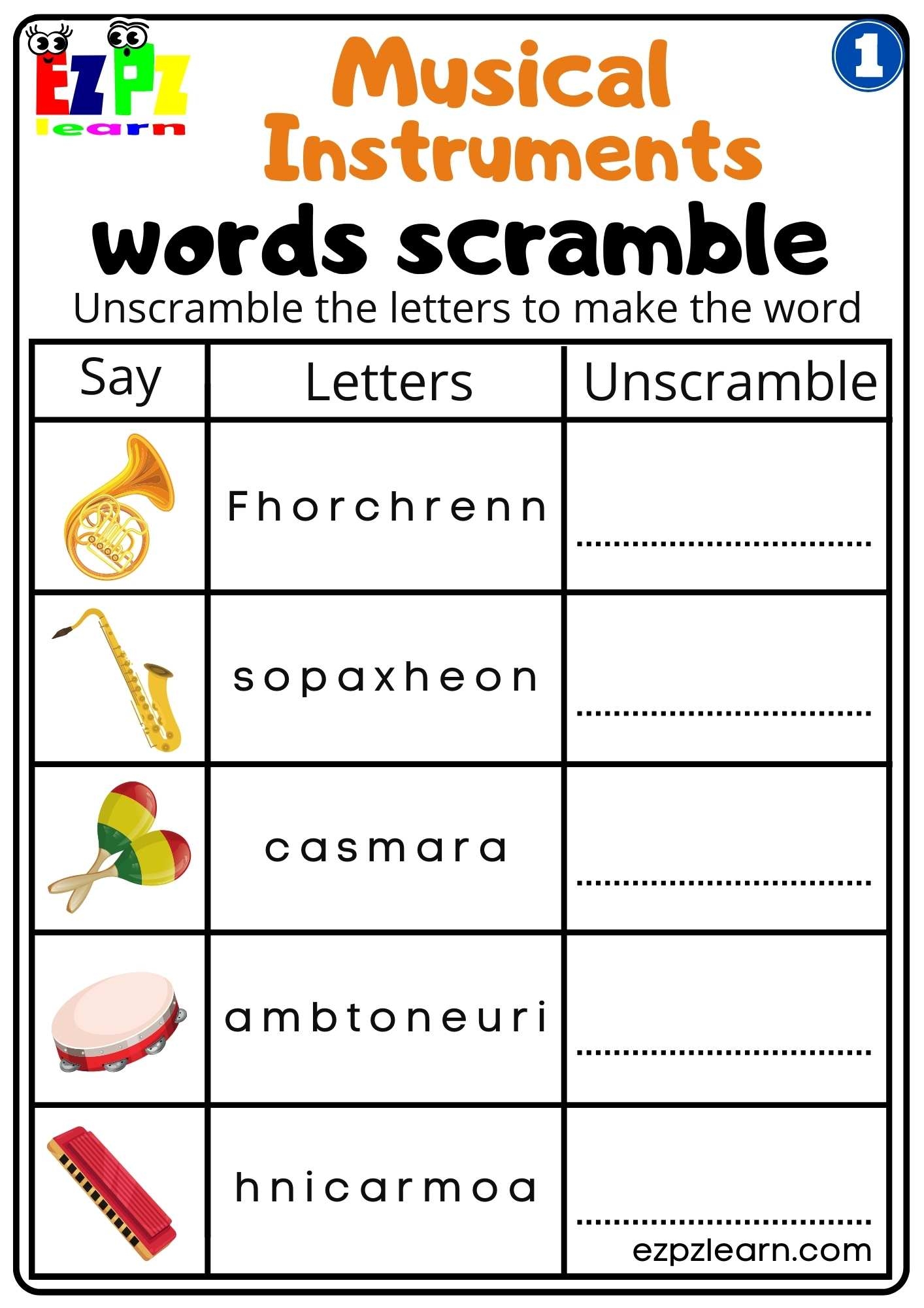 By engaging in this activity, children will also enhance their memory retention as they learn to associate each instrument with its name and visual representation. It’s a fun and interactive way to introduce kids to the world of music and percussion instruments.