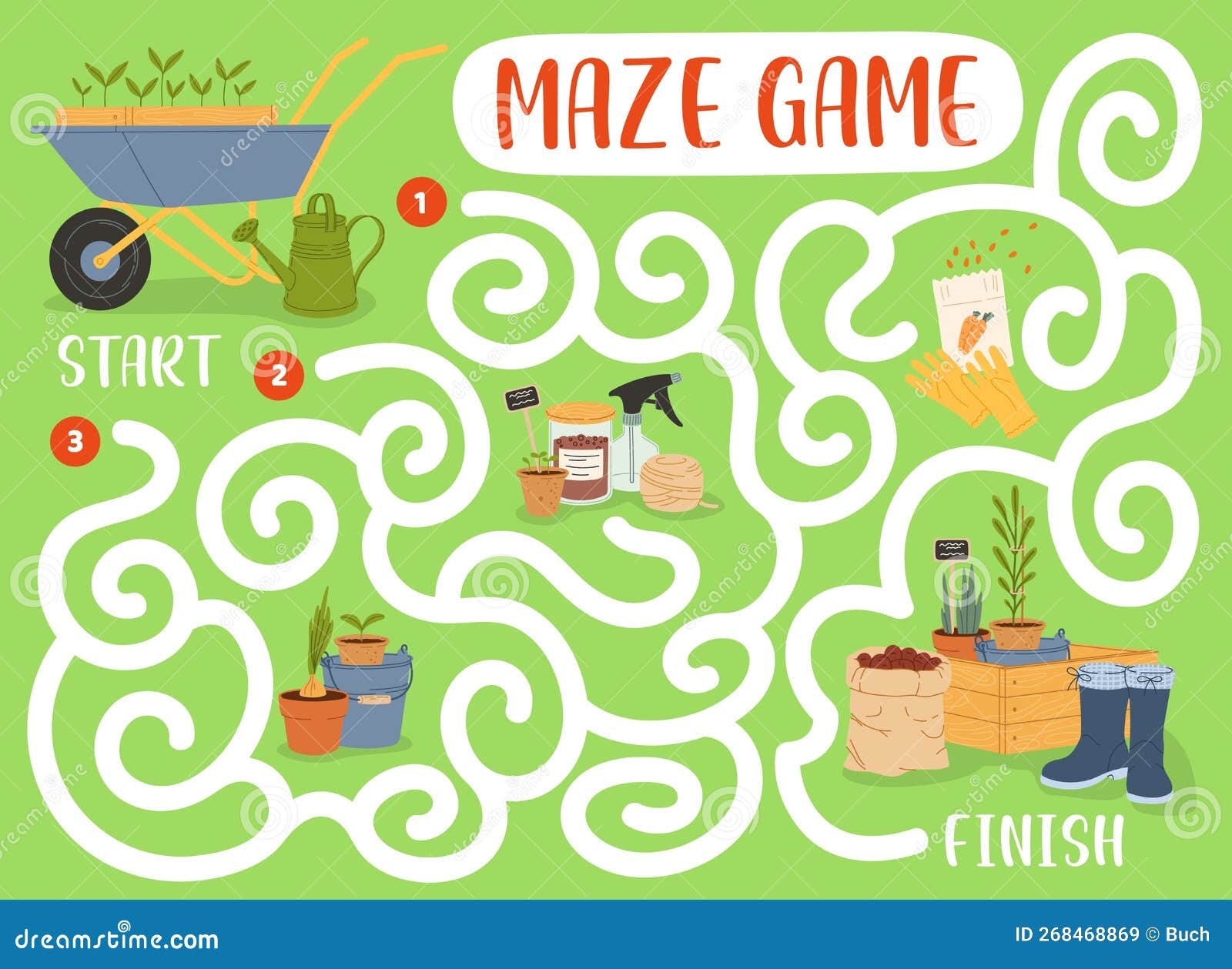 Labyrinth Maze Game Farm And Gardening Tools Stock Vector Illustration Of Plant Labyrinth 268468869