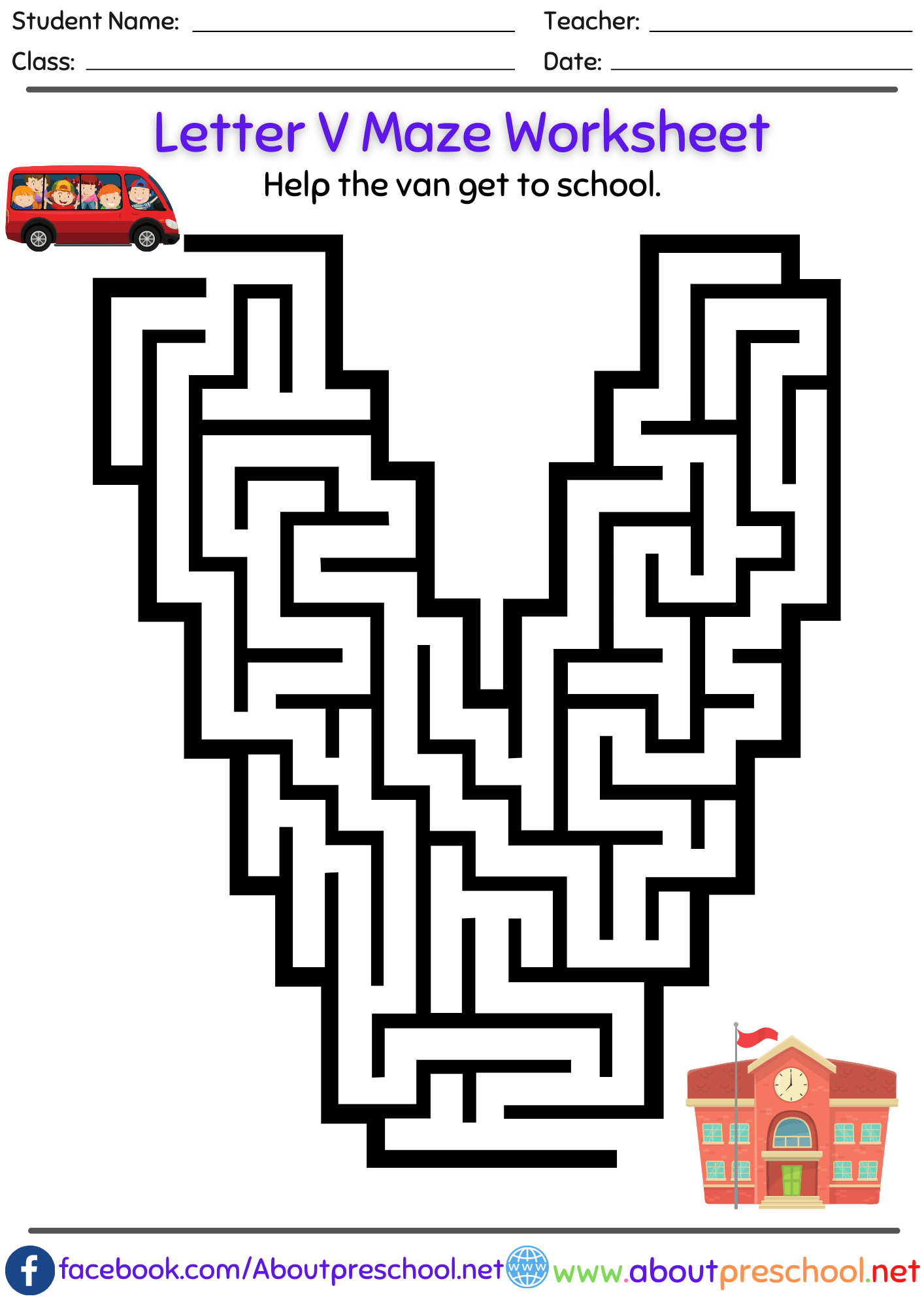 Preschool Coloring Worksheets Mazes Letter V