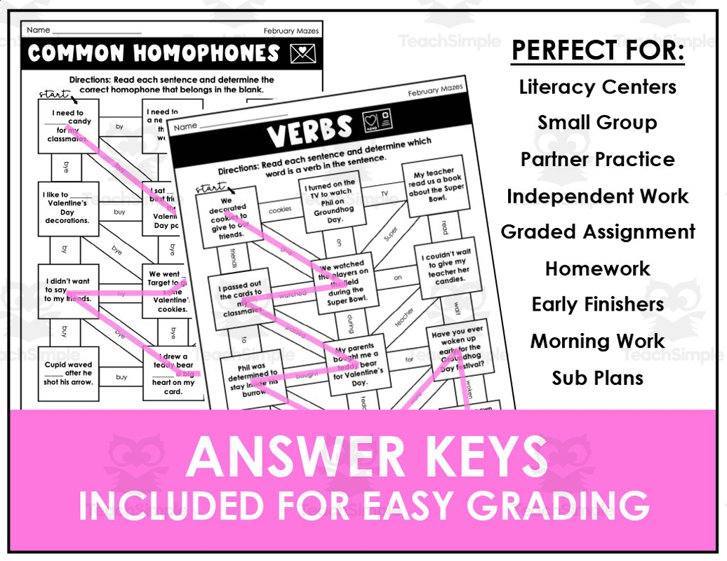 February Parts Of Speech Grammar Mazes By Teach Simple