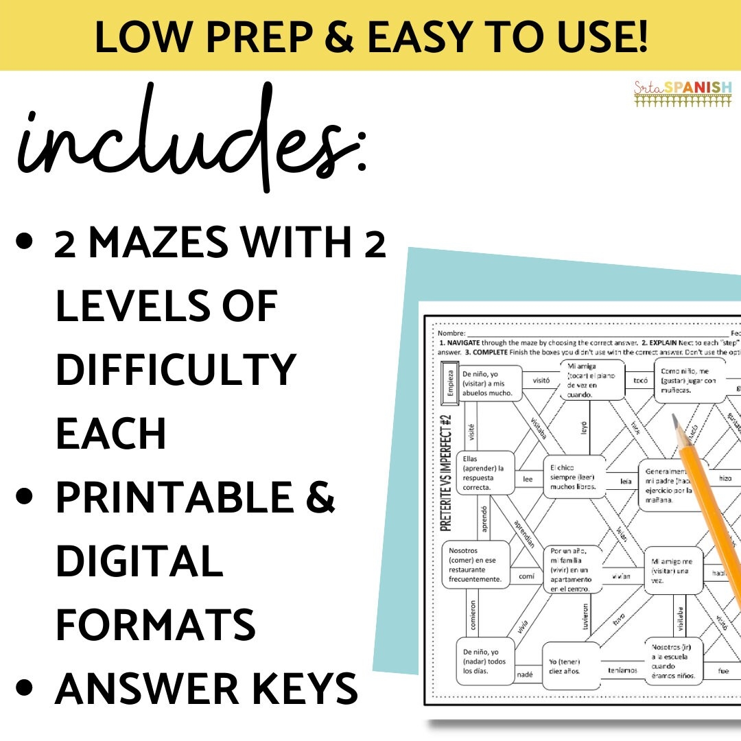 This worksheet provides students with a fun and engaging way to test their knowledge of when to use the preterite versus the imperfect tense in Spanish. By completing the maze and answering the questions along the way, learners can reinforce their understanding of these two important grammar concepts.