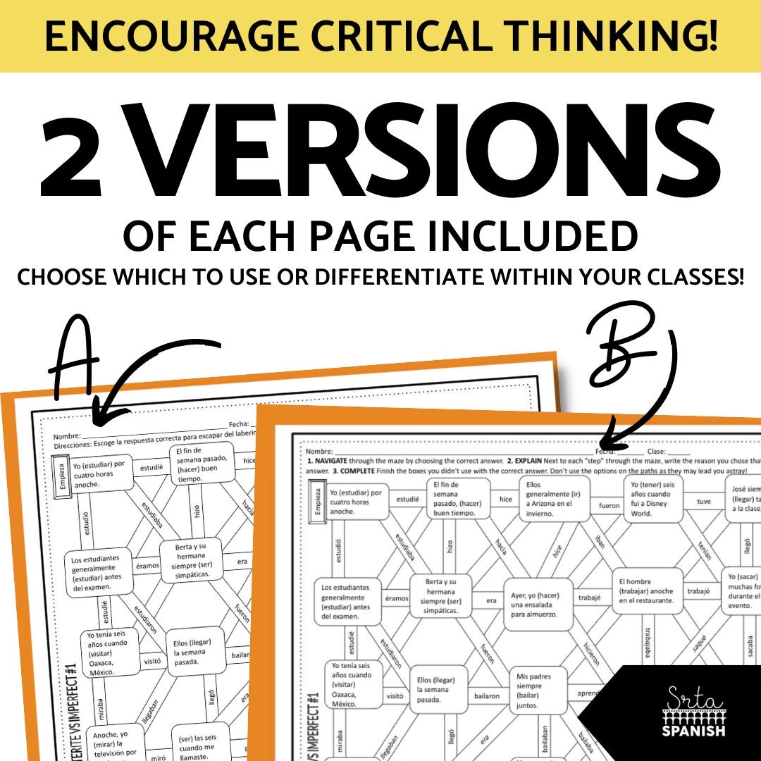 Preterite Vs Imperfect Spanish Maze Worksheet Practice Activity For High School Students With Google Slides Etsy