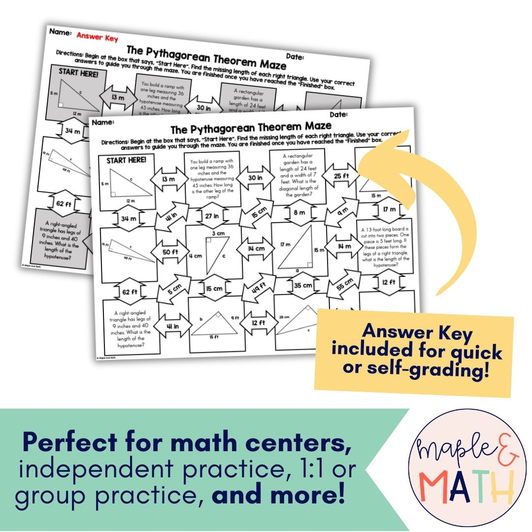 The Pythagorean Theorem Printable Maze Activity Worksheet 8th