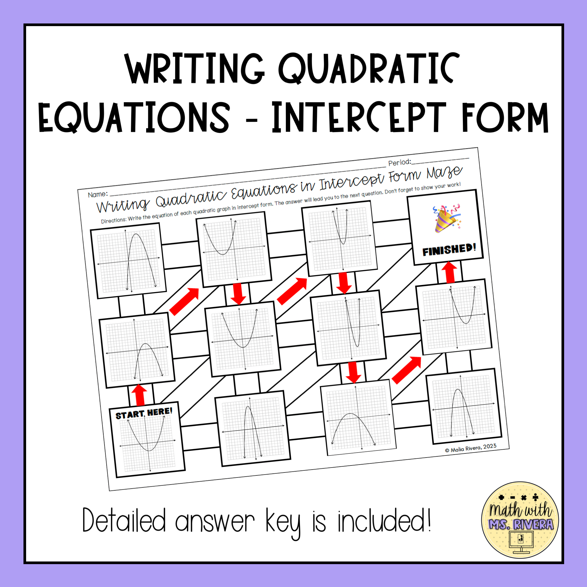 Quadratics Maze Worksheet Answers