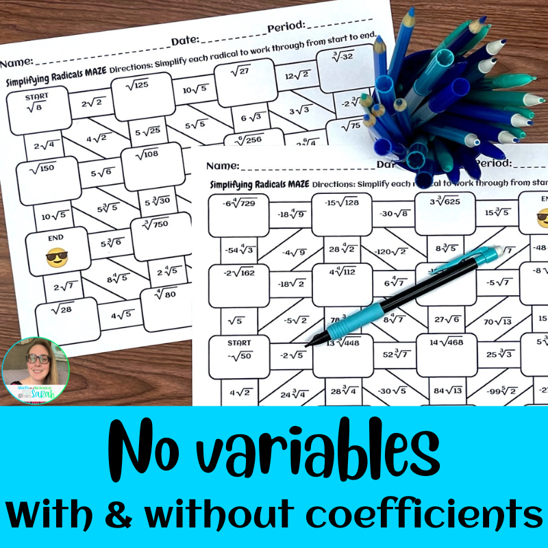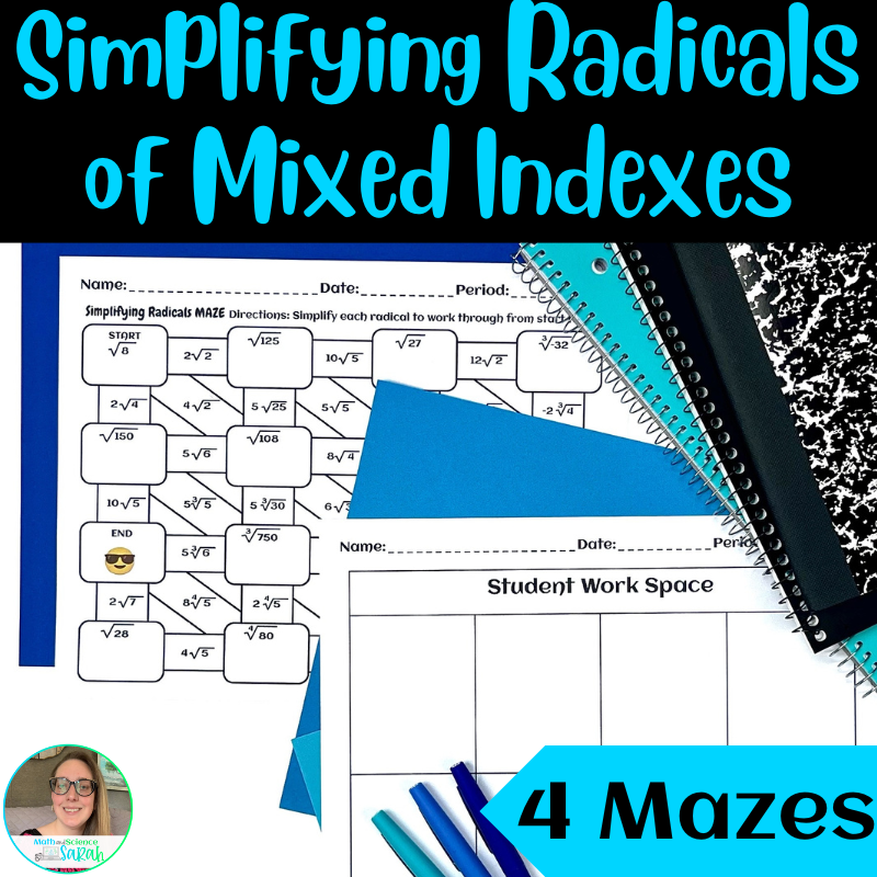 4 Simplifying Radical Expression Mazes W Variables Square Cube U0026 Higher Indexes Math And Science Sarah