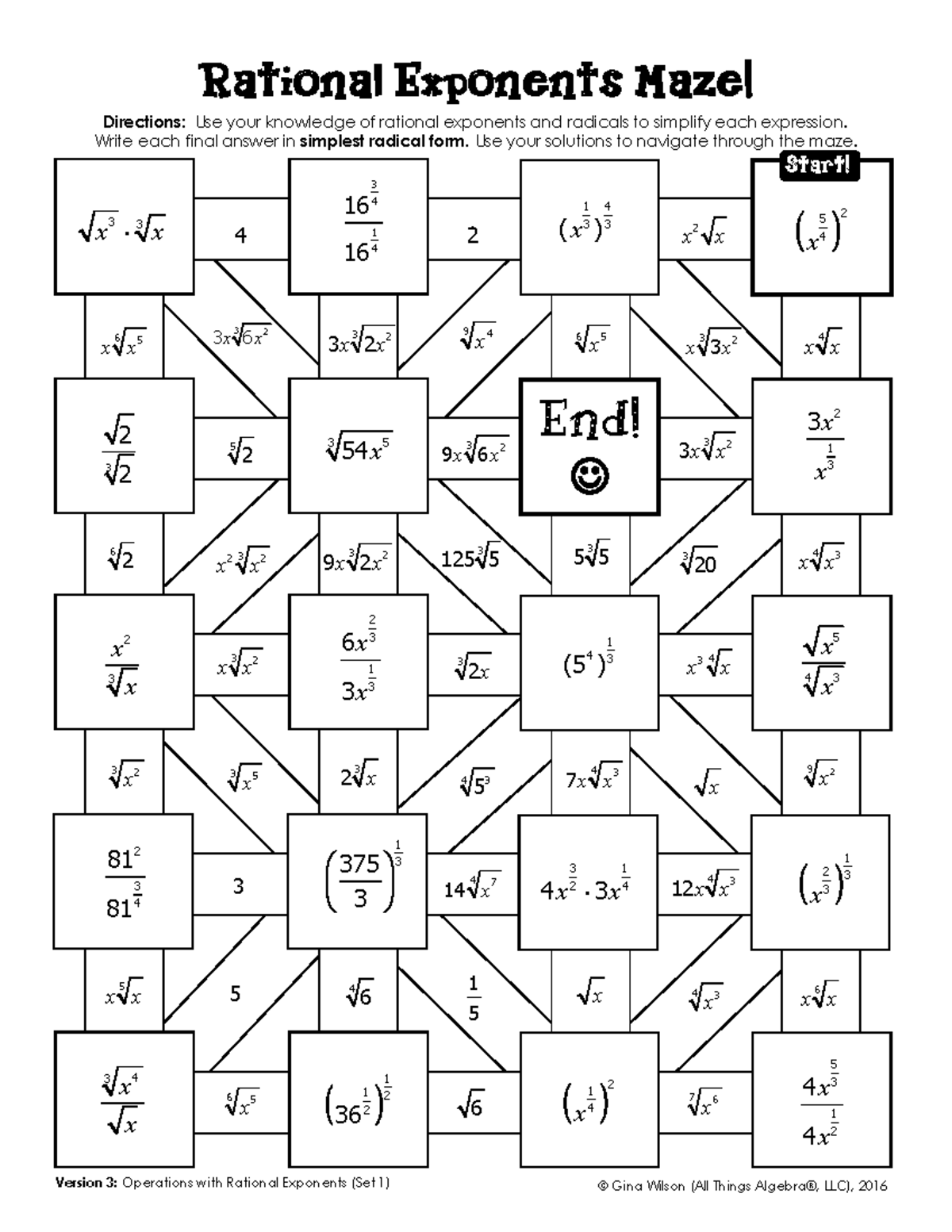 Rational Exponents Maze 3 4 Worksheet Version 3 Operations With Rational Exponents Set 1 Gina Studocu