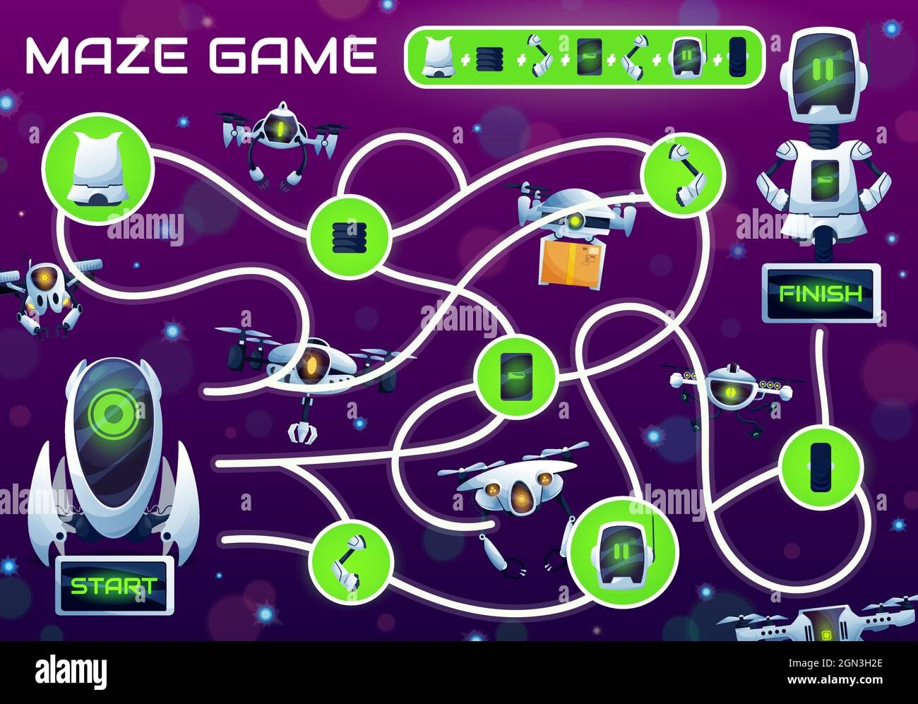 Labyrinth Maze Help Cartoon Robots To Find Exit Vector Image