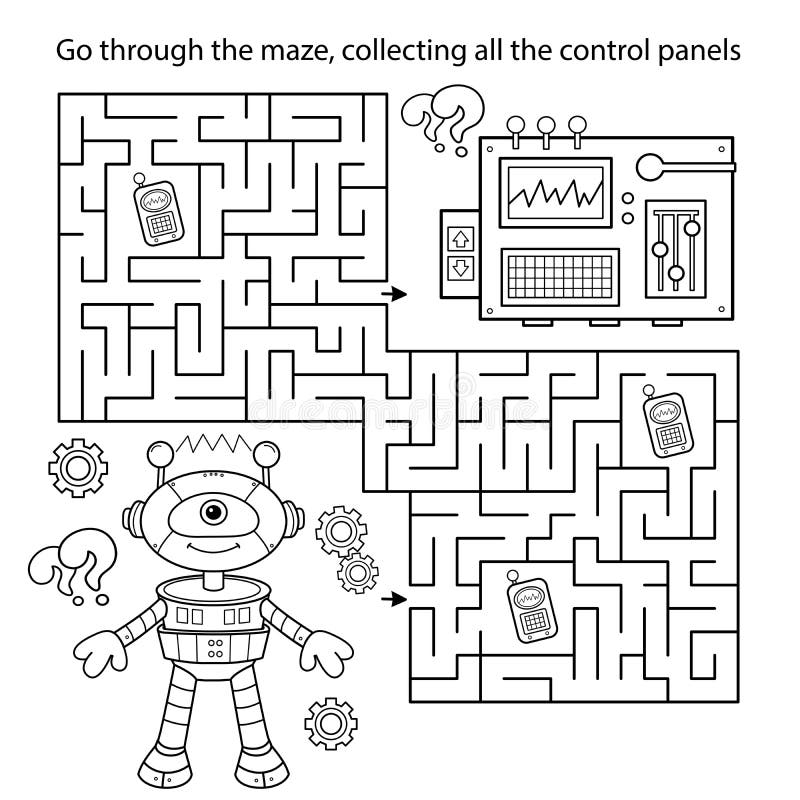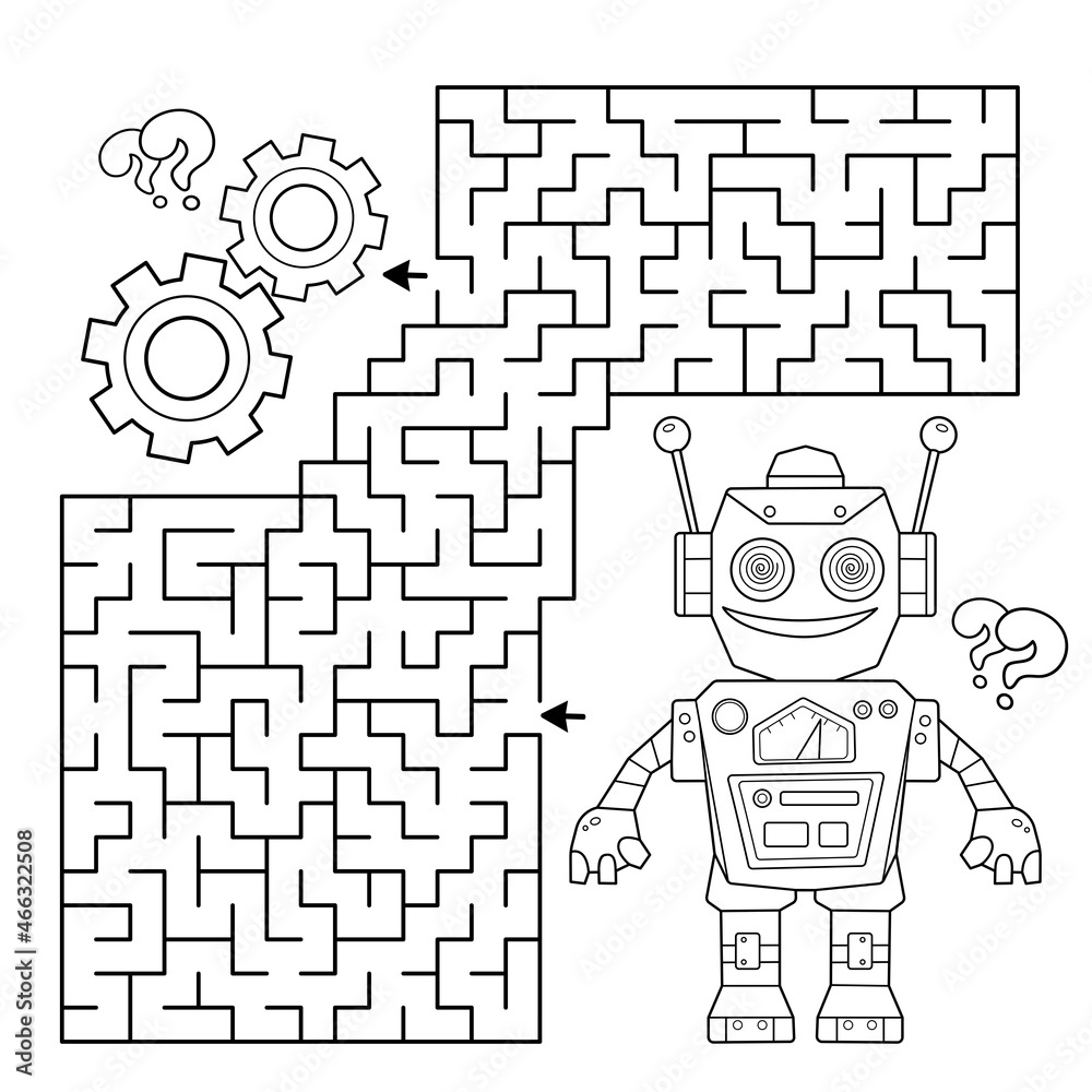Maze Or Labyrinth Game Puzzle Coloring Page Outline Of Cartoon Little Robot Stock Vector Illustration Of Line Contour 232335099
