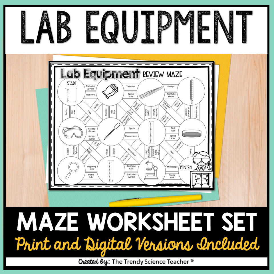 Lab Equipment Maze Worksheet Set Physical U0026 Life Sciences The Trendy Science Teacher