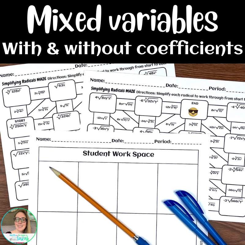 4 Simplifying Radical Expression Mazes W Variables Square Cube U0026 Higher Indexes Math And Science Sarah