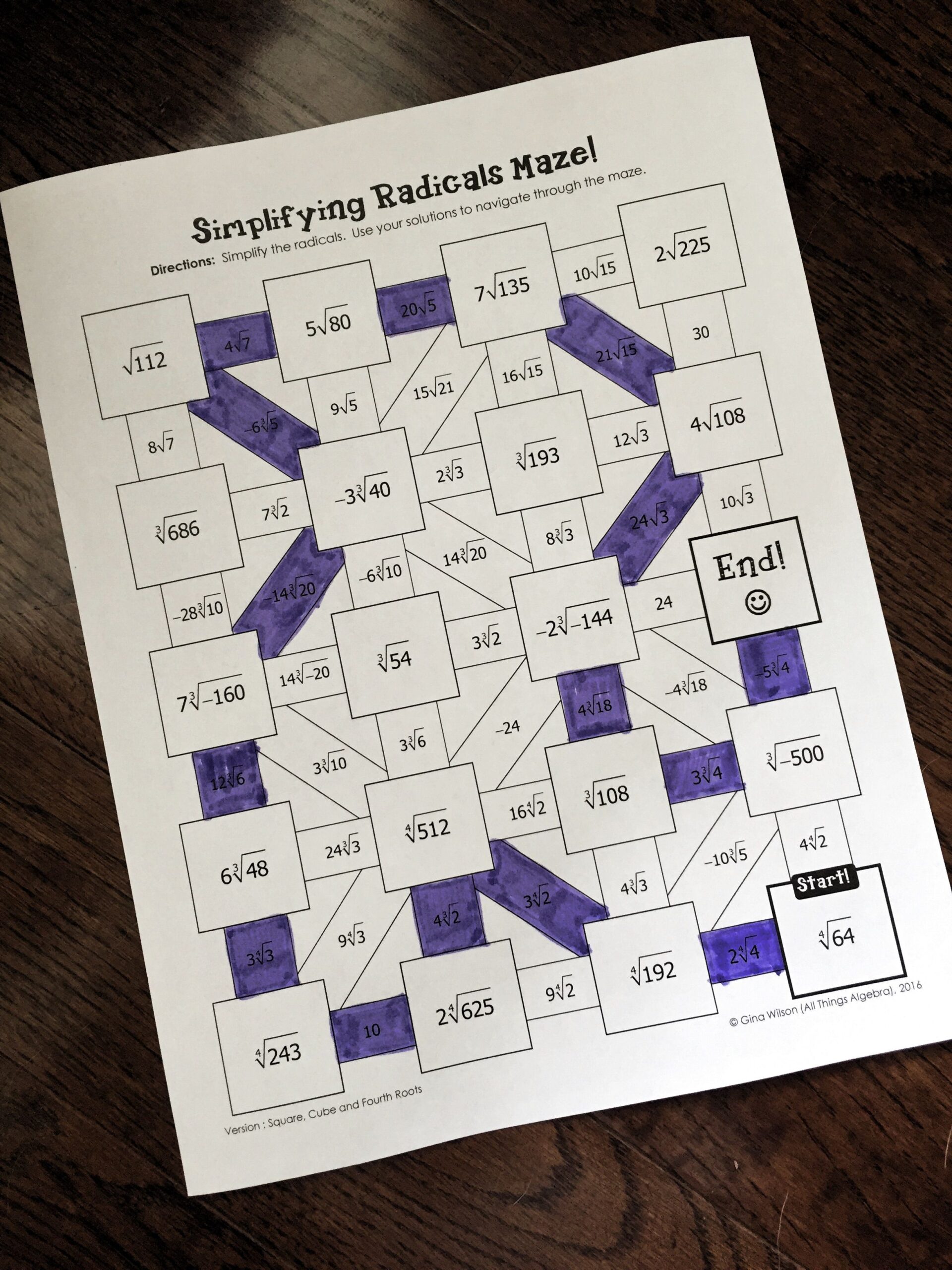 Algebra Simplifying Radicals Maze Made By Teachers