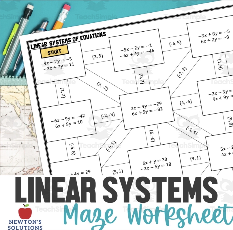 Linear System Of Equations Maze Worksheet