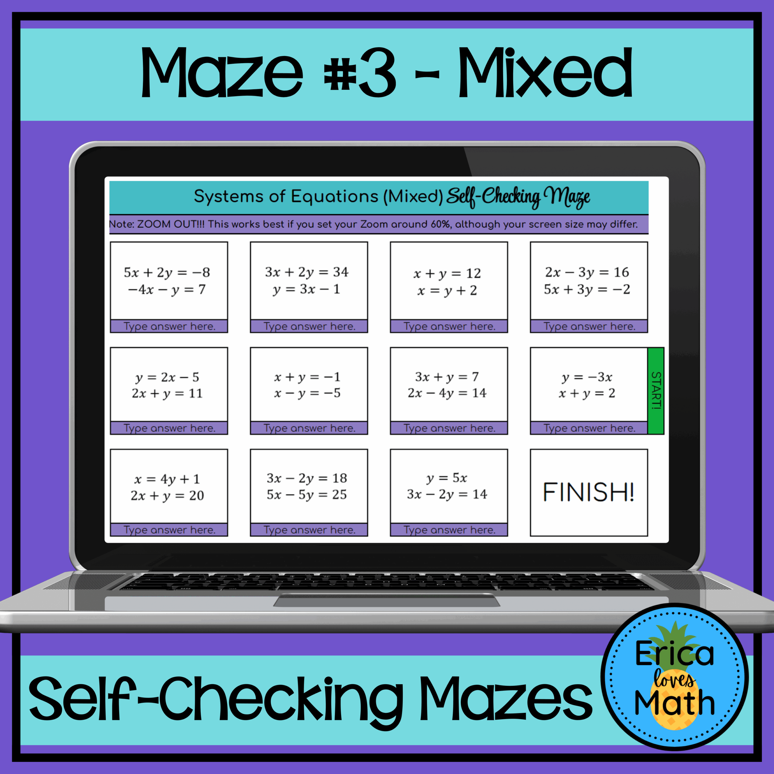 Solving Systems Of Equations Digital Activity Self Checking Maze Made By Teachers