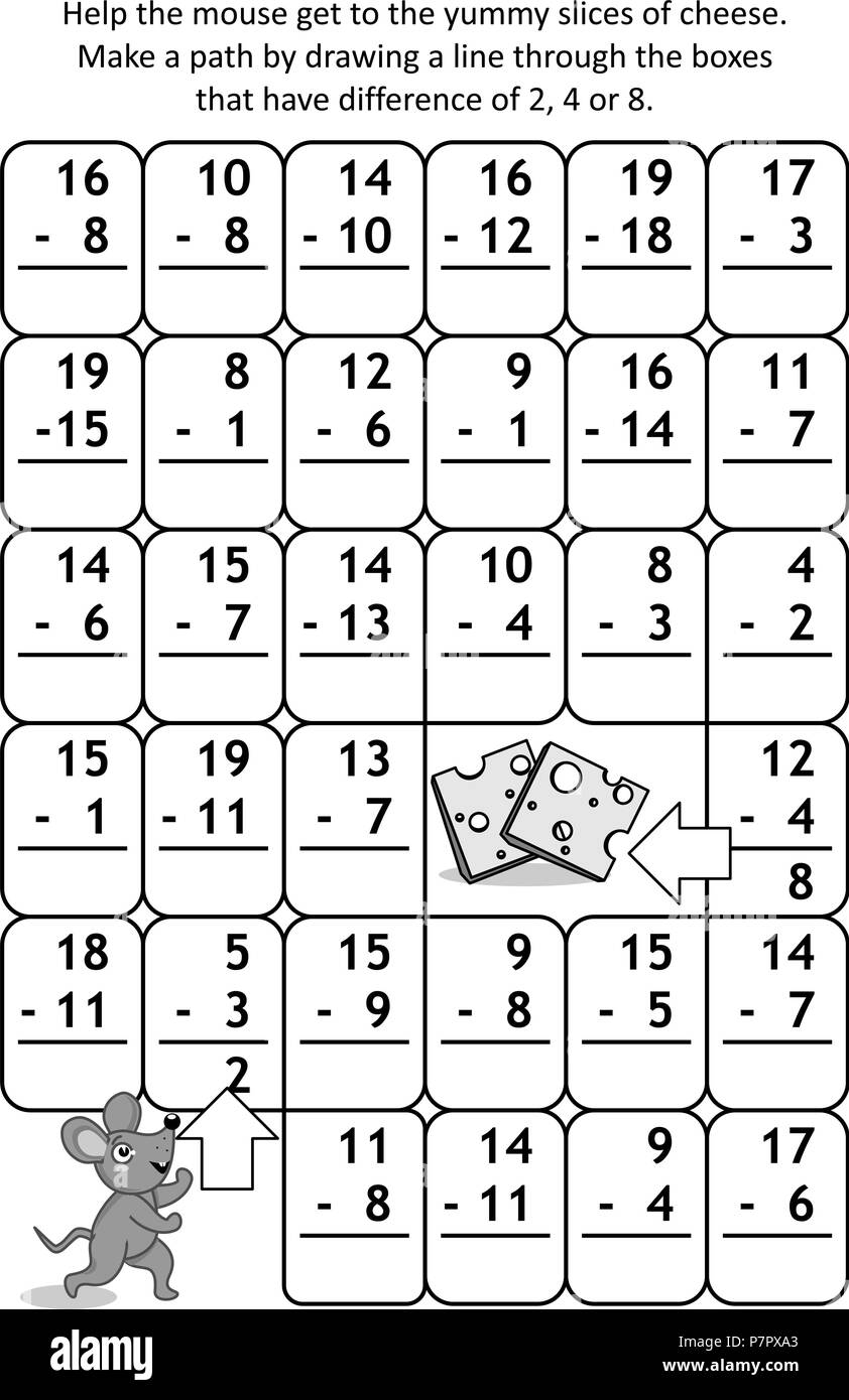 Math Maze With Subtraction Facts Help The Mouse Get To The Yummy