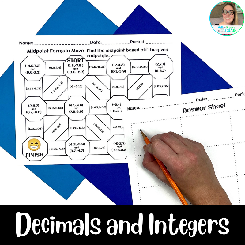 4 Midpoint Formula Mazes W Two Endpoints Printable Math Worksheet Activities Math And Science Sarah