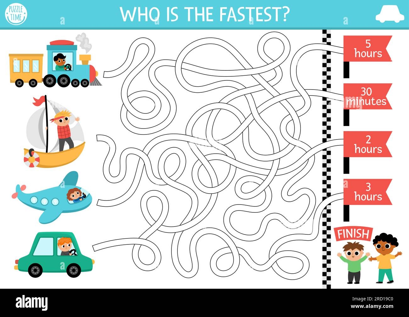 Transportation Maze For Kids With Car Train Boat Plane And Time