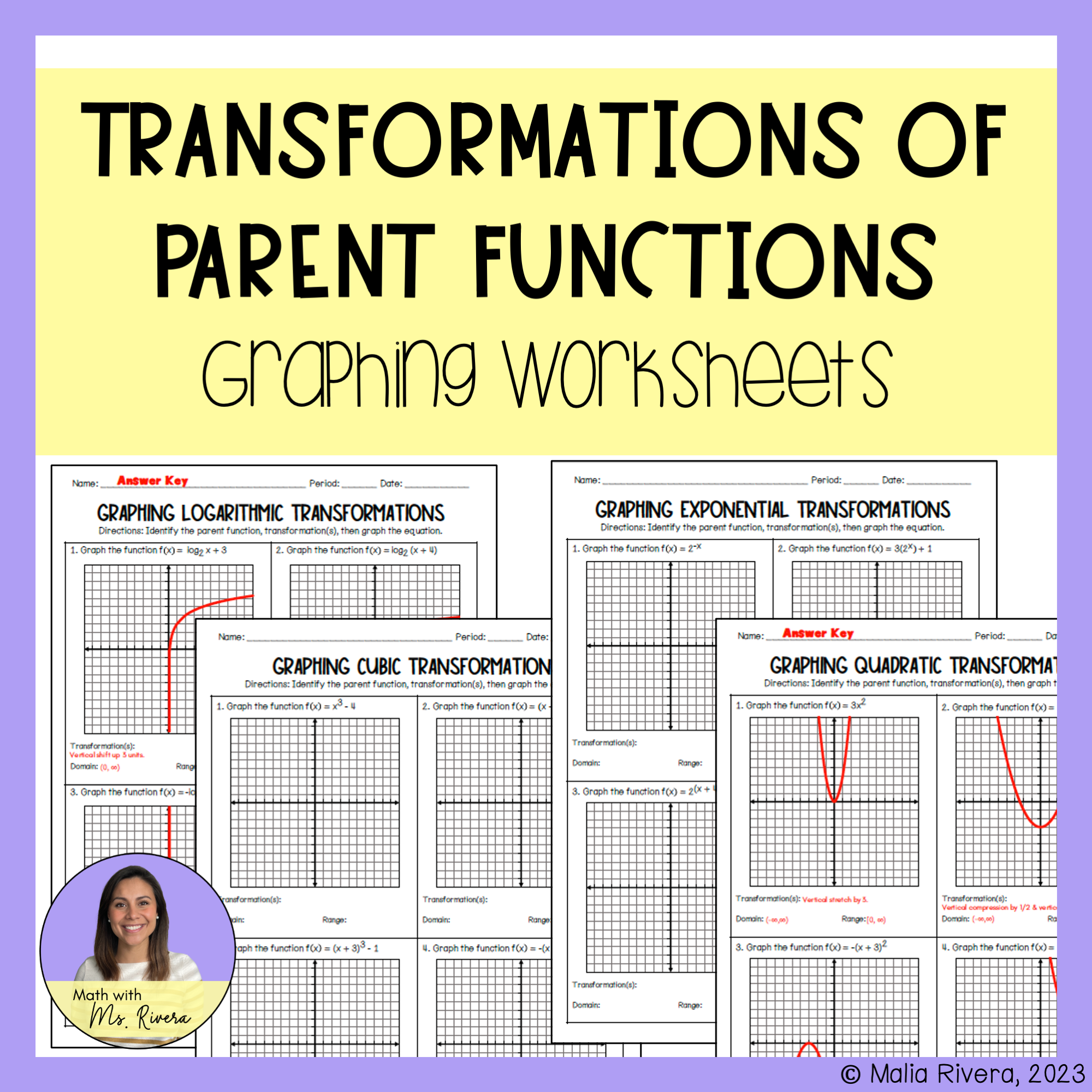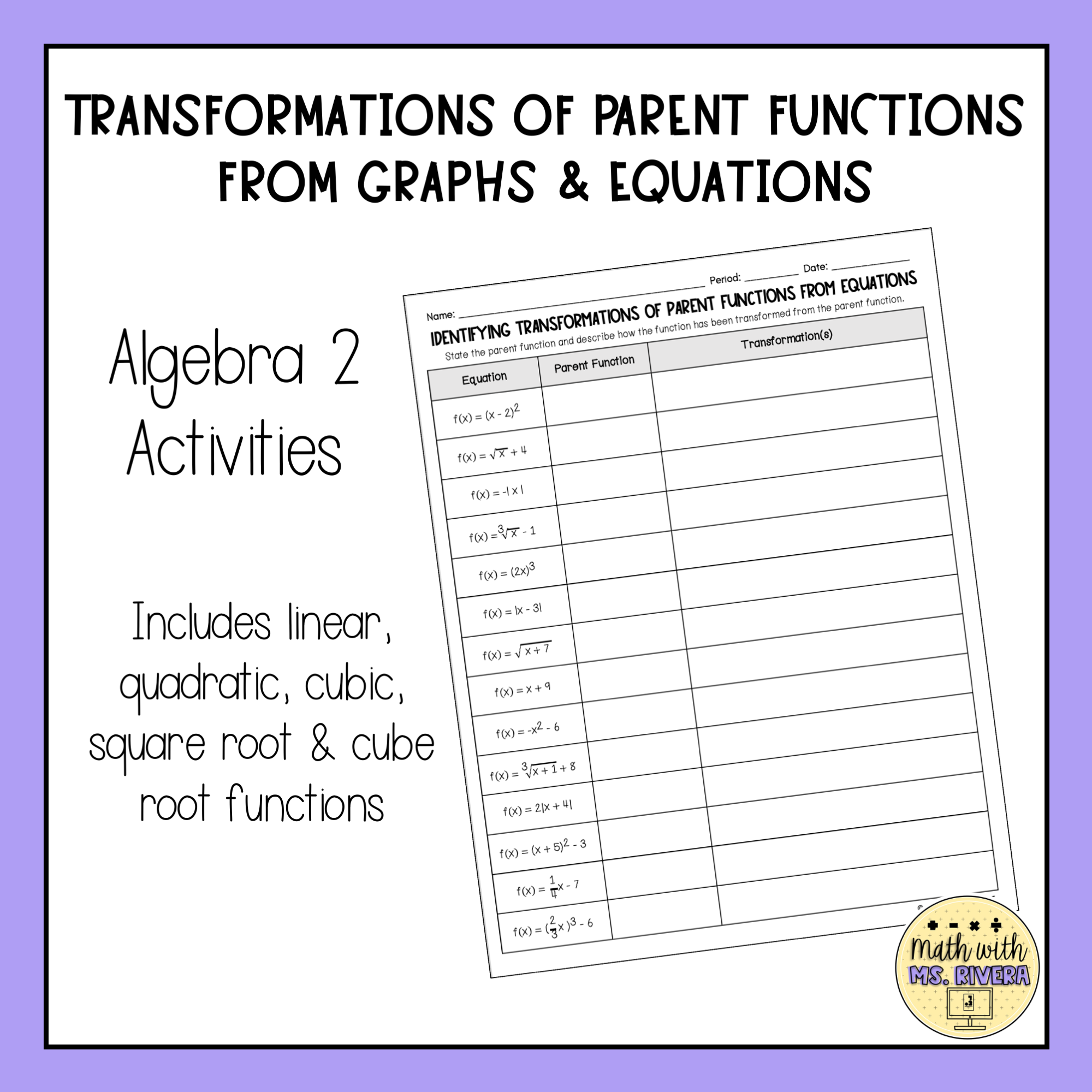 Graphing Parent Function Transformations Worksheets Made By Teachers