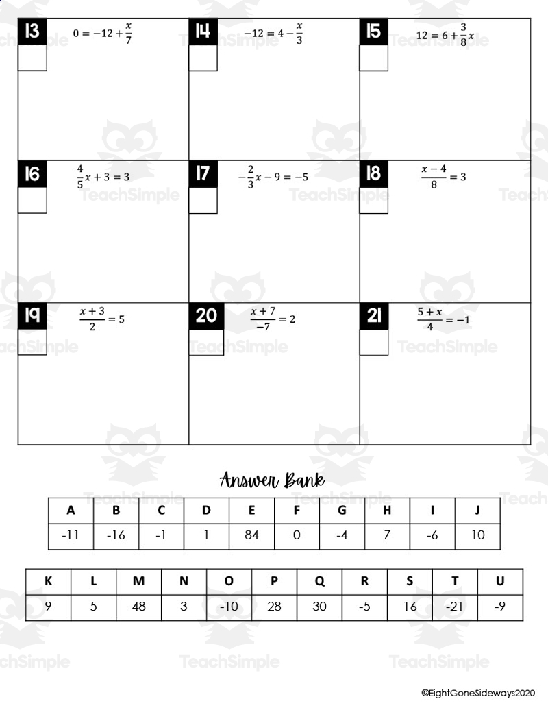 With this worksheet, you’ll navigate through a maze by solving equations along the way. It’s a hands-on and engaging way to reinforce your understanding of two-step equations. Plus, who doesn’t love a good maze?