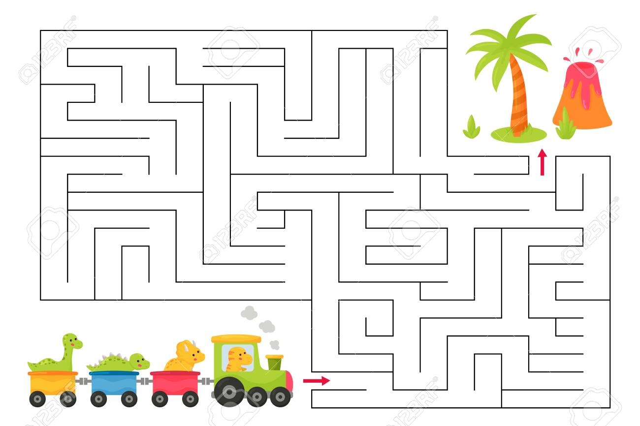 Maze Game For Children Cute Kawaii Cartoon Dinosaurs On The Train Funny Labyrinth Educational Activity Worksheet For Preschoolers Royalty Free SVG Cliparts Vectors And Stock Illustration Image 137446274