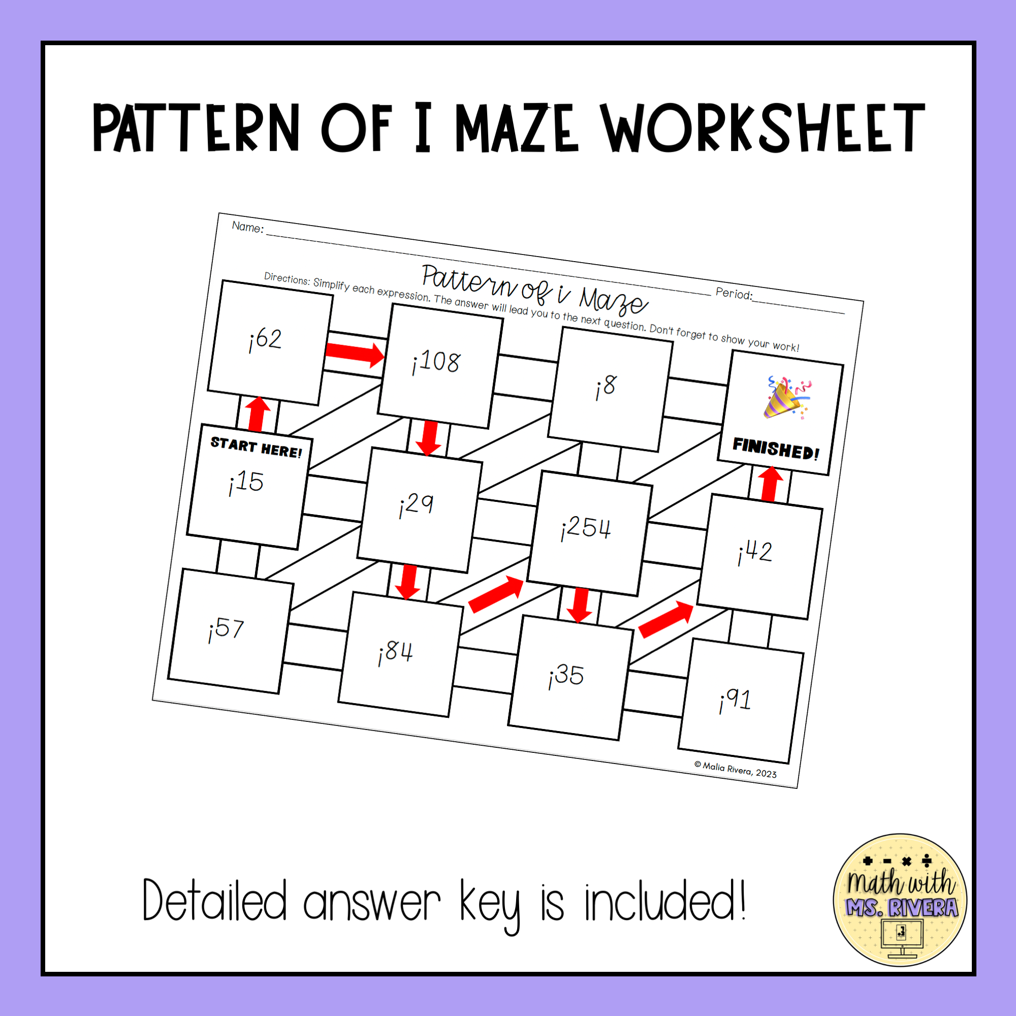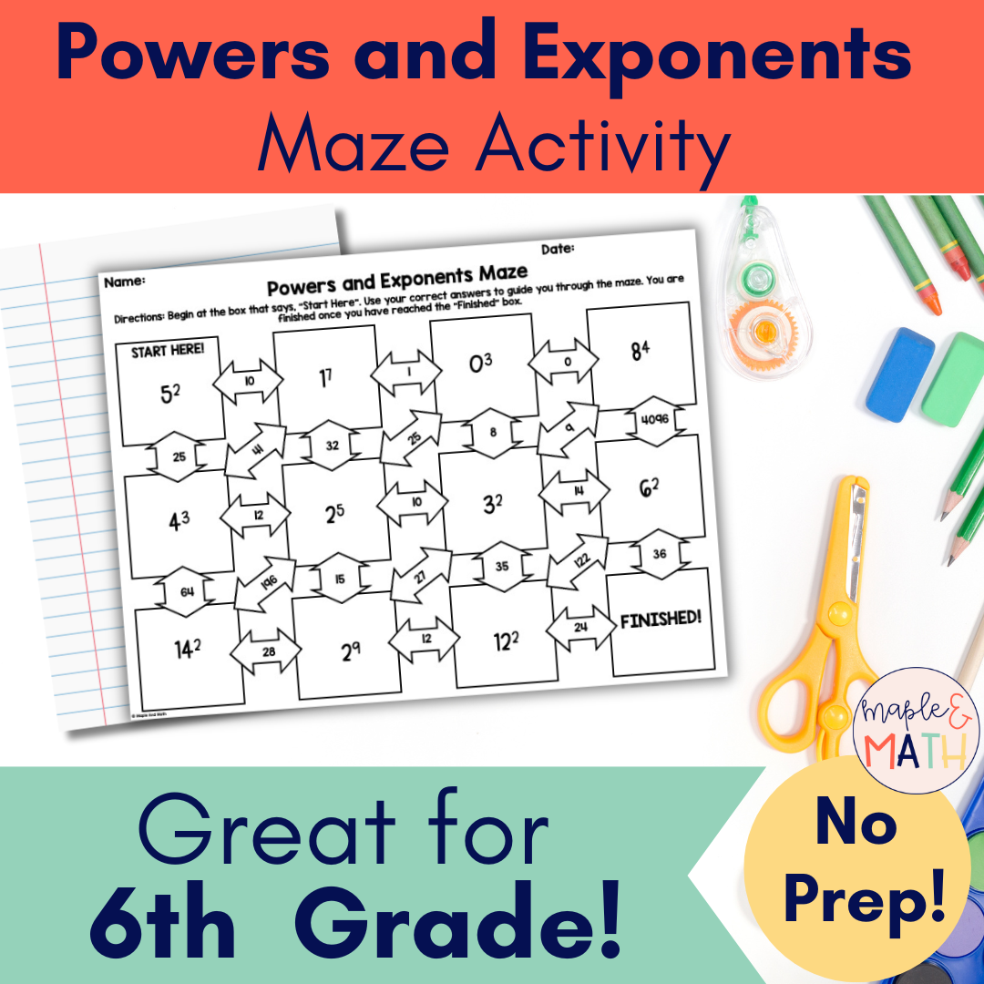 Powers And Exponents Printable Maze Activity Worksheet 6th Grade Classful