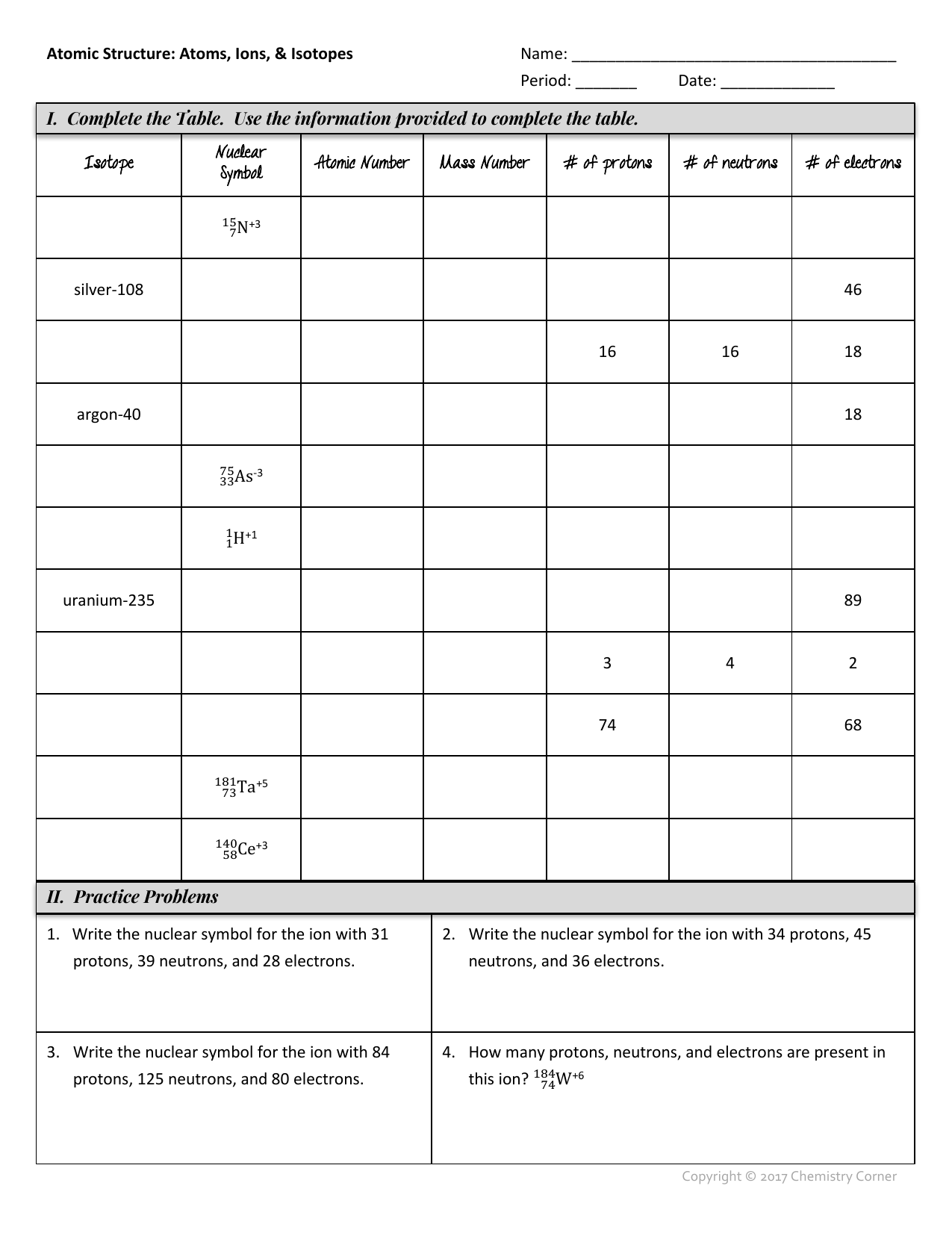 Atomic Structure Atoms Ions U0026 Isotopes Worksheet