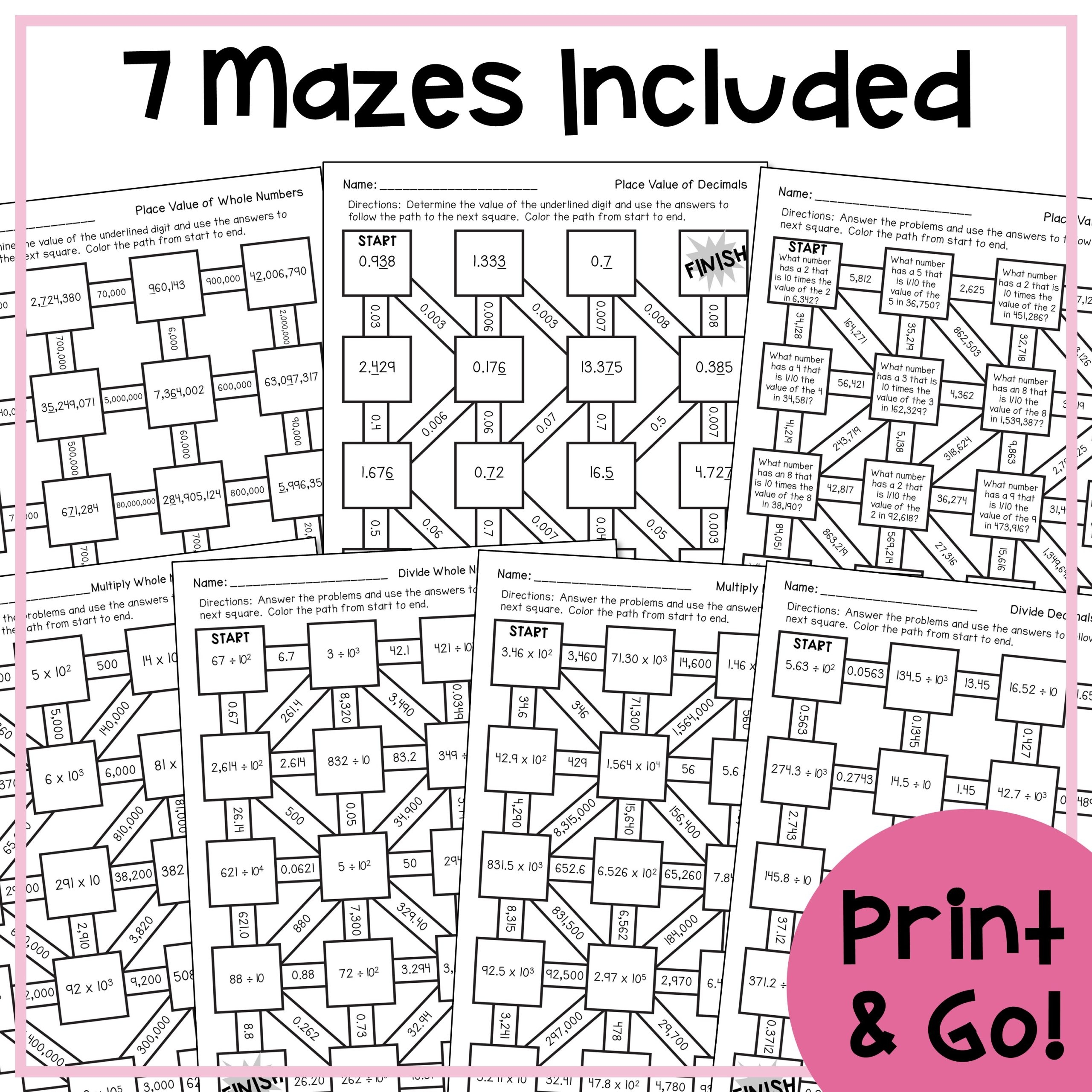 Place Value Math Maze Worksheets 5th Grade Made By Teachers