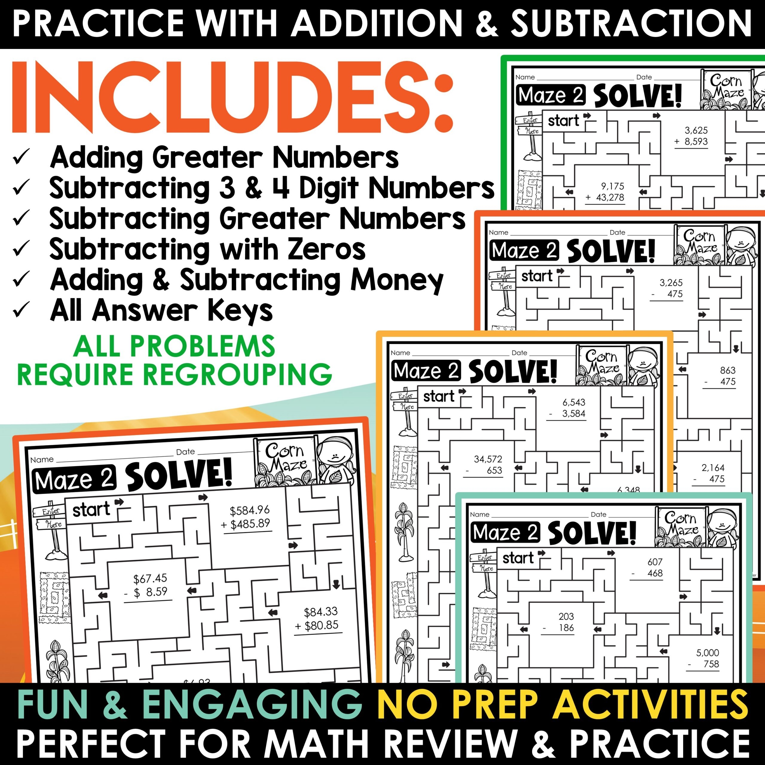 Multi Digit Addition And Subtraction Math Mazes Made By Teachers