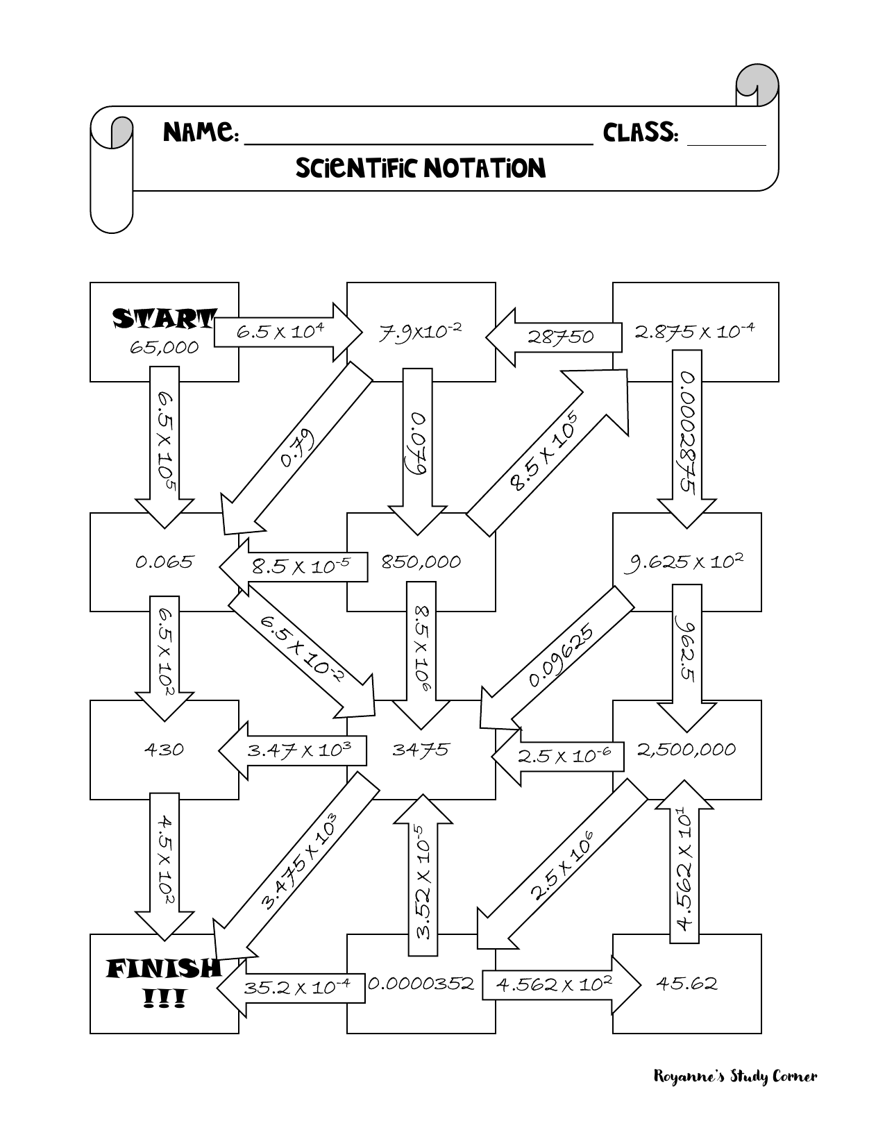 Scientific Notation Worksheet Maze Activity
